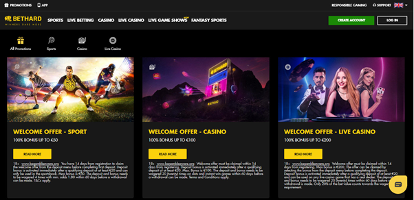 Bethard Casino is happy to offer you a lot of generous bonuses. Most customers are waiting for a no deposit bonus, but such gift is not provided here. Though, it still provides you with three types of welcome offer. Each welcome offer is connected to each type of casino activity. Those activities are sports betting, ordinary casino games and live games. If we are talking about sports betting, you will be able to receive 100% bonus that can let you receive up to €50.