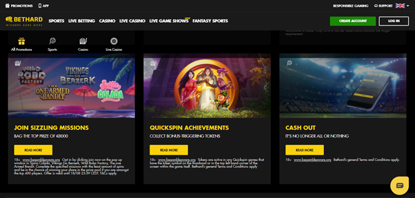 To take a look at the other bonuses and free spins offers, you can click on the “Promotions” button. Each offer is displayed with a separate icon and the smallest piece of information. To check terms and conditions for each offer, you should click “Read more”.